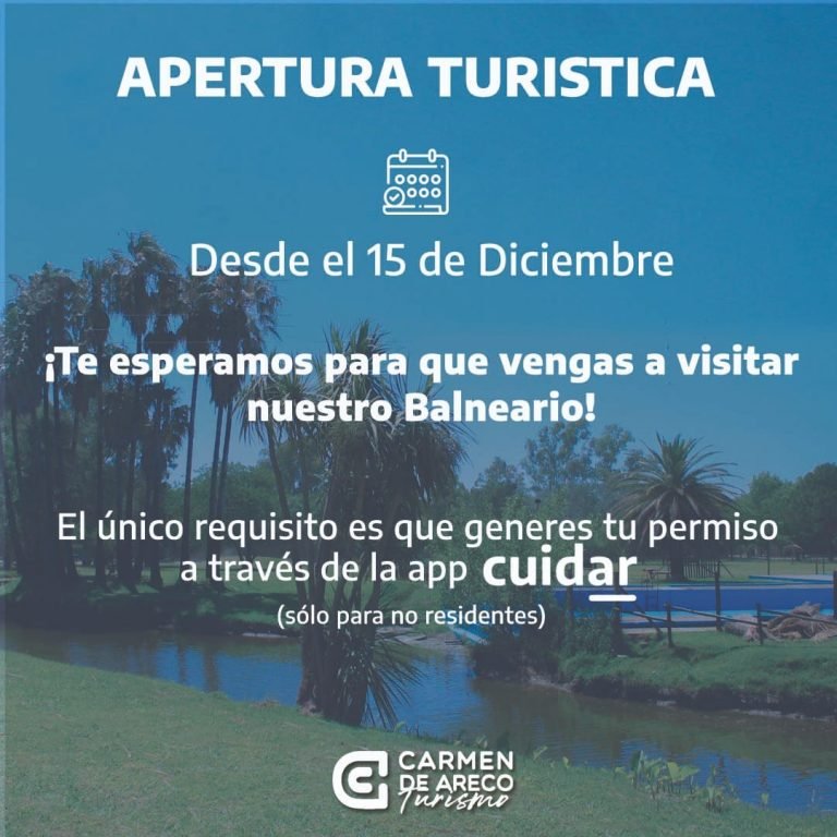 A partir del 15 de diciembre nuestro Balneario abre las puertas para los no residentes de Carmen de Areco que cuenten con el permiso generado